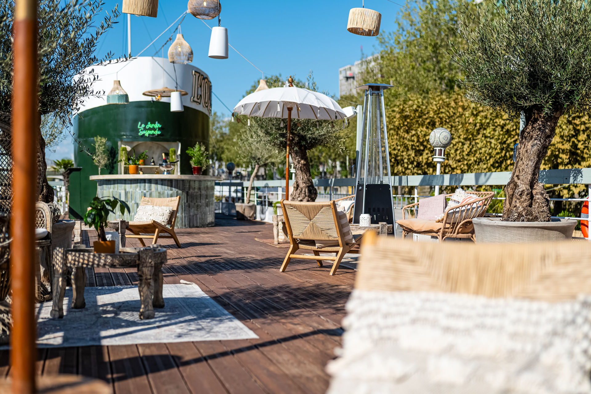 Nichée sur les quais, La Provençale déploie ses 200 m² de terrasse végétalisée dans un décor qui sent bon le Sud : oliviers centenaires, plantes aromatiques, lumière dorée.